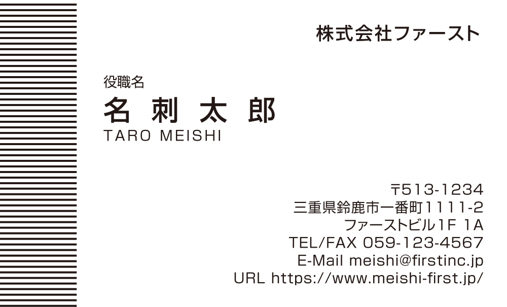 モノクロ 縦ライン3社名と氏名の文字を太めにすることで、さりげなくHPアドレスもアピール。上手い。